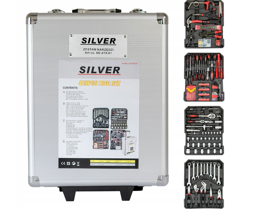 ZESTAW WALIZKA NARZĘDZIOWA NASADKI GRZECHOTKA KLUCZE GRZECHOTKI 419EL